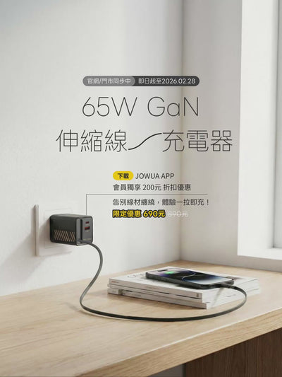 65W GaN 伸縮線充電器